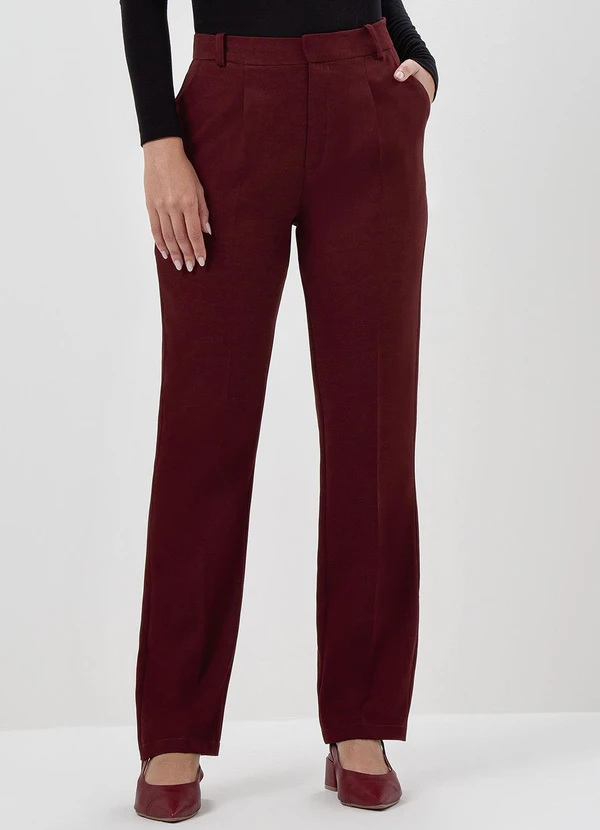 Principessa - Calça Reta Regular de Alfaiataria Bordô Taciane