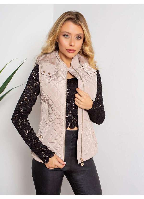 Susie Modas - Colete com Capuz Feminino Bege