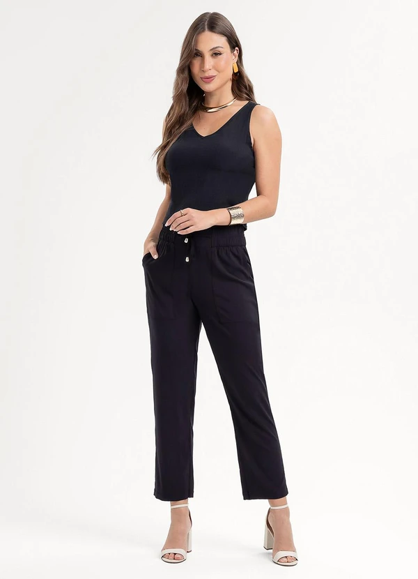 Composição: BLUSA: 97% VISCOSE, 3% ELASTANO, CALCA: 3% ELASTANO, 97% VISCOSE