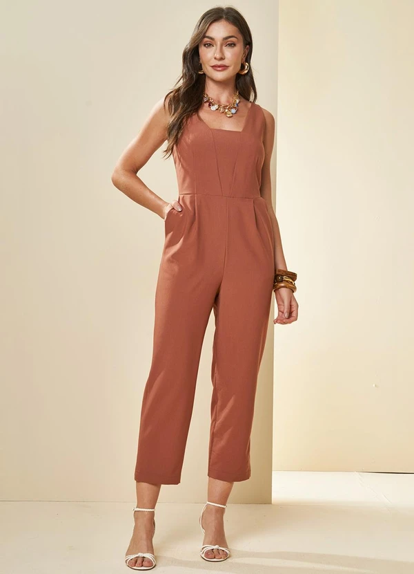 Doce Trama - Macacão Tropical em Alfaiataria Marrom