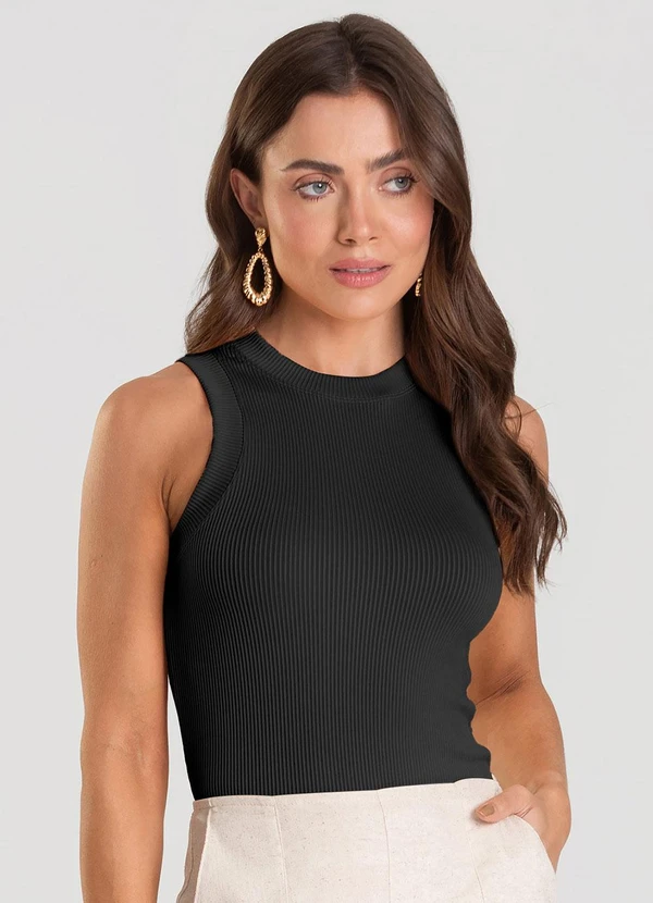 Dianna - Regata Feminina Canelada Preto