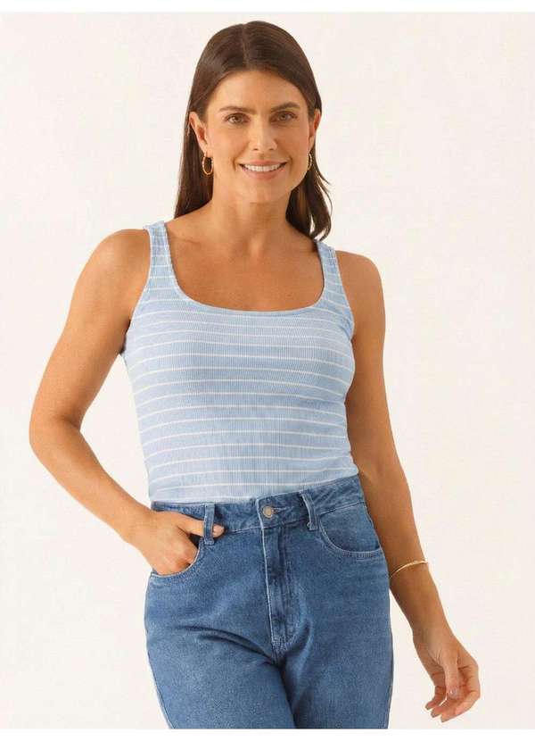 Principessa - Regata Malha Canelada em Viscose Azul X Branco Maira