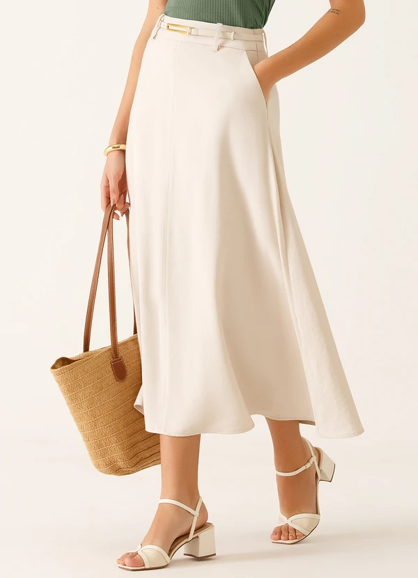 Principessa - Saia Alfaiataria Maxi Sarja Areia Gislayne