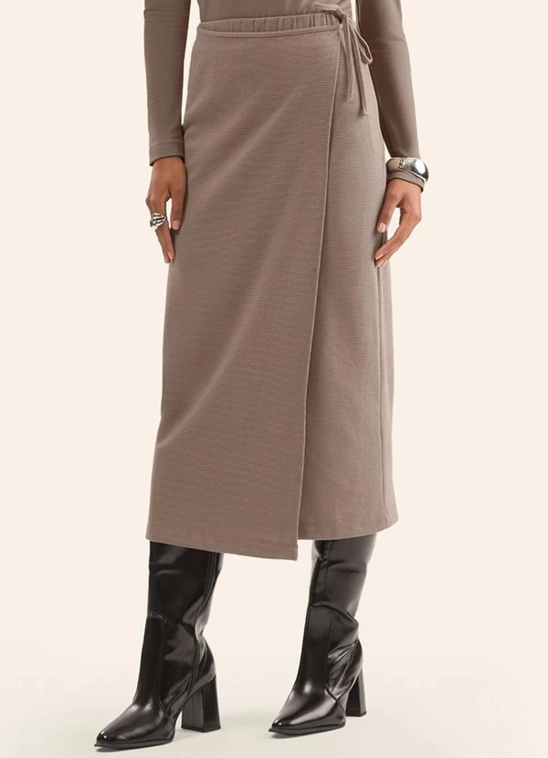 Rovitex - Saia Midi Envelope em Malhão Marrom