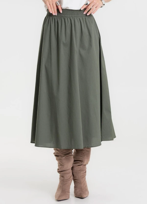 Rovitex - Saia Midi Evasê em Popeline Verde