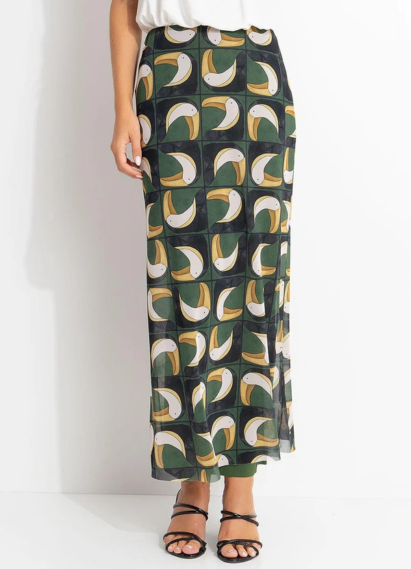 Farm - Saia Midi Tule Tuca Tropical Mini Verde