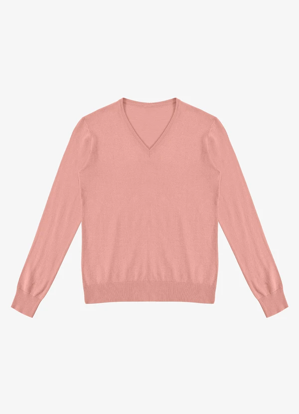 Rovitex - Sueter Feminino Gola V em Tricot Rosa