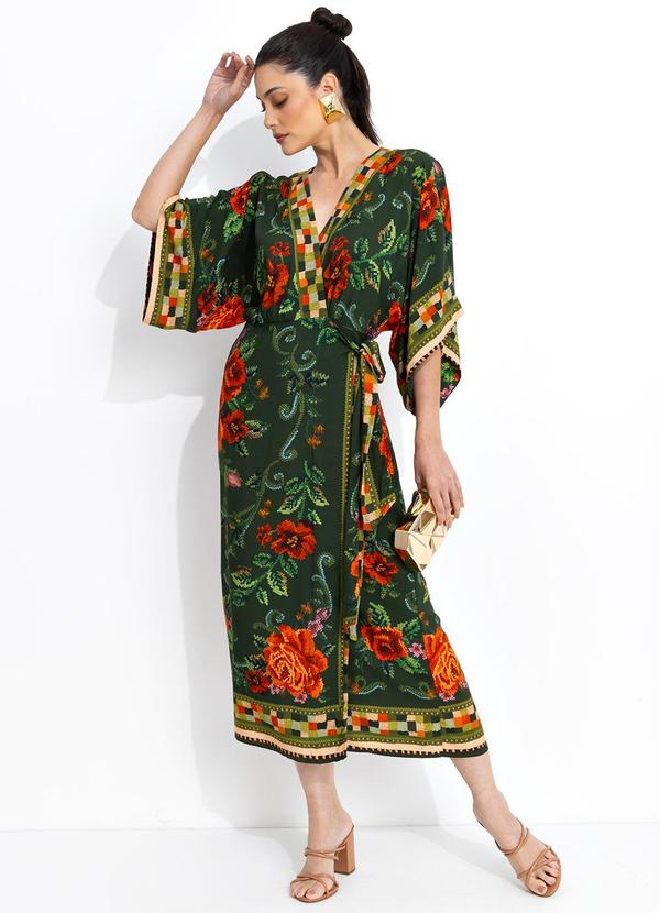 Vestido elegante com decote em V, mangas amplas e moderno design envelope. Seu comprimento midi proporciona charme atemporal. Perfeito para ocasiões especiais, este vestido combina estilo e sofisticação.