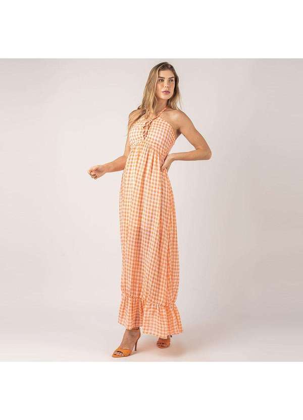 Vestido longo, confeccionado em poliéter com detalhes. Possui bojo e decote com amarração. Aquela peça pra você abusar nesse verão. Invista! Composição do Tecido: 100% Poliéster. Forro: 100% Poliéster. Medidas: Tamanho P (38): Busto: 82-88cm | Cintura: 66-70cm | Quadril: 90-98cm. Tamanho M (40): Busto: 88-92cm | Cintura: 70-74cm | Quadril: 98-102cm. Tamanho G (42): Busto: 92-96cm | Cintura: 74-80cm | Quadril: 102-108cm. Tamanho GG (44): Busto: 96-100cm | Cintura: 80-86cm | Quadril: 108-114cm.