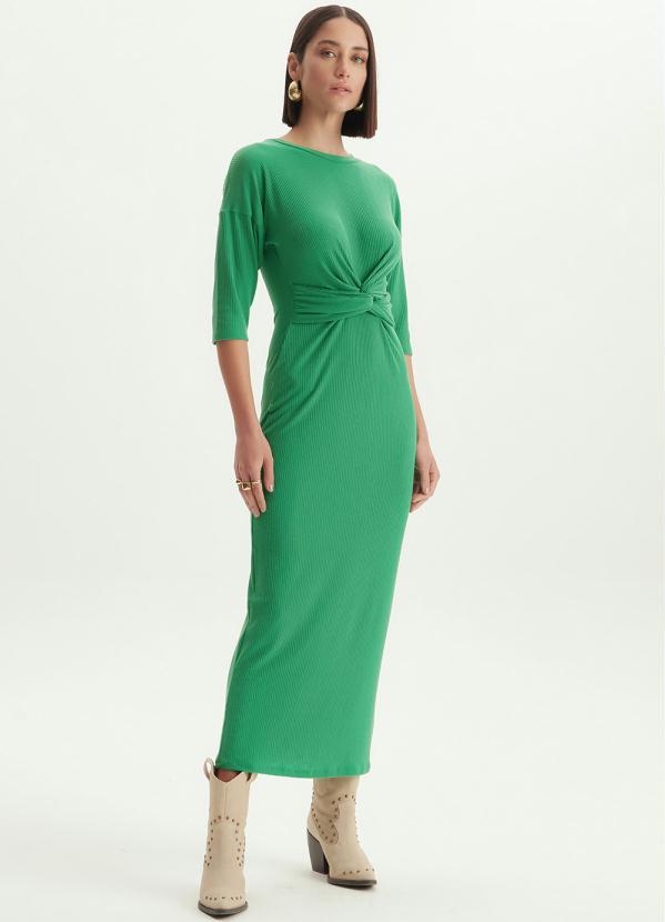 Lança Perfume - Vestido Midi de Malha com Torção Frontal Verde