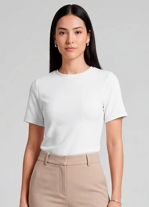 Infinita Cor - Blusa Feminina Justa com Manga Curta Bege - INFINITA COR