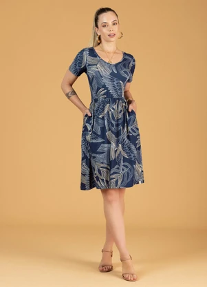 Vestido Estampado Adulto Feminino Azul