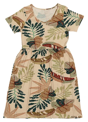 Vestido Estampado Adulto Feminino Bege