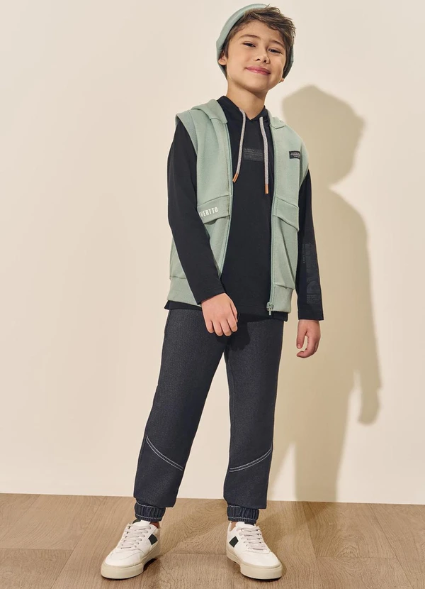 Composição: COLETE: 77% ALDOGÃO 23% POLIÉSTER FORRO CAPUZ: 100% ALGODÃO
