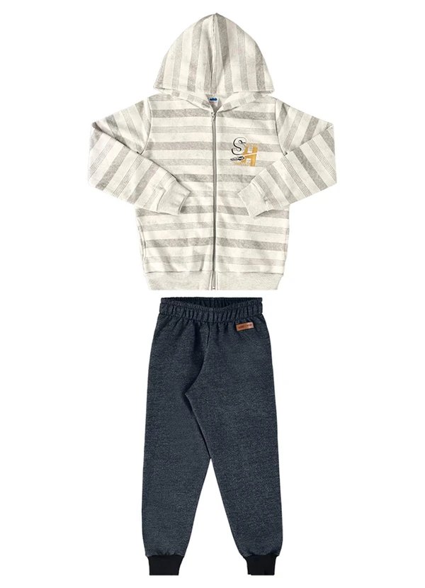 Marlan - Conjunto Jaqueta e Calça Moletom Jeans Cinza
