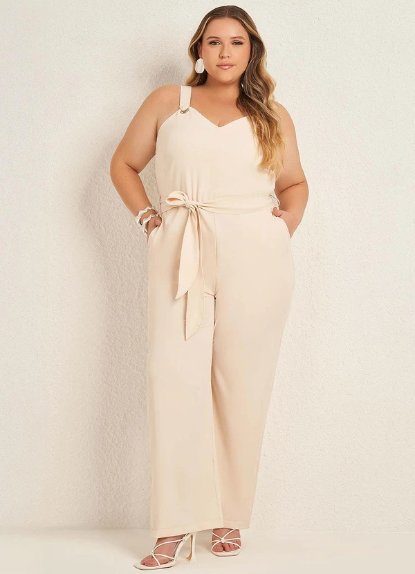 Lisamour - Macacão Pantalona com Faixa na Cintura Branco