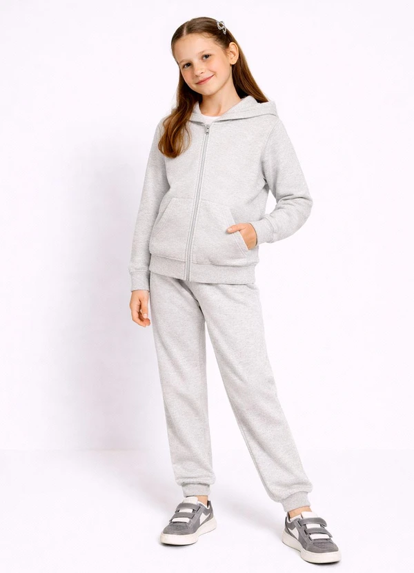 Abrange - Conjunto Infantil Menina em Moletom Cinza Claro