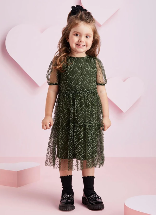 Momi - Vestido de Tule com Poá Flocado Verde