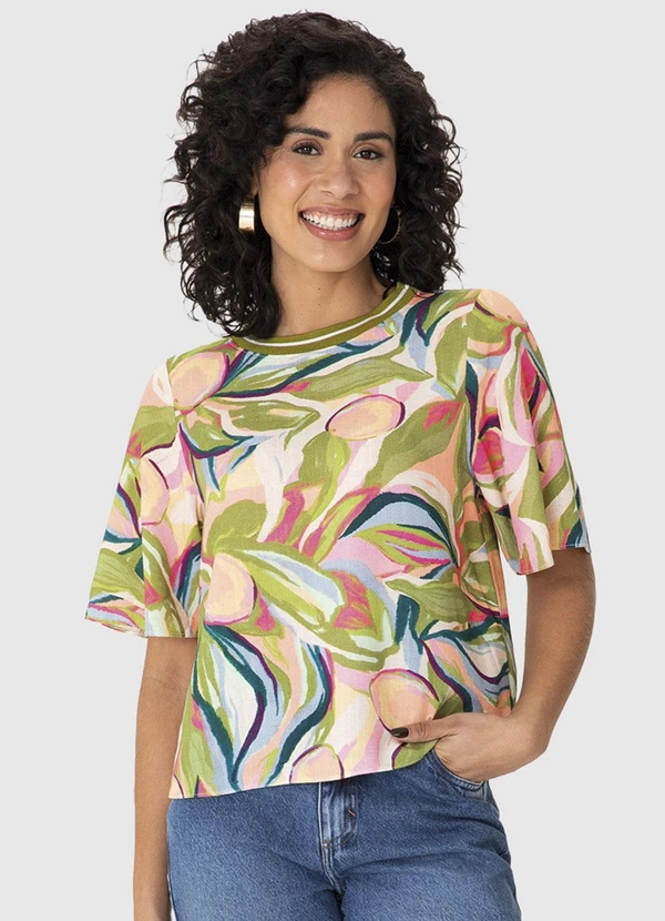 Malwee - Blusa Ampla Tropical em Viscolinho Verde