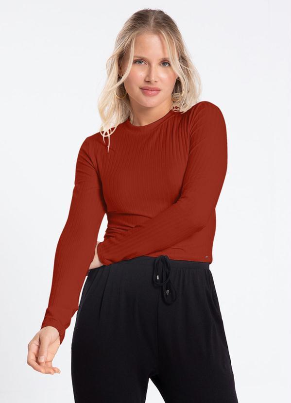 Lunender - Blusa Canelada Básica com Gola Vermelho
