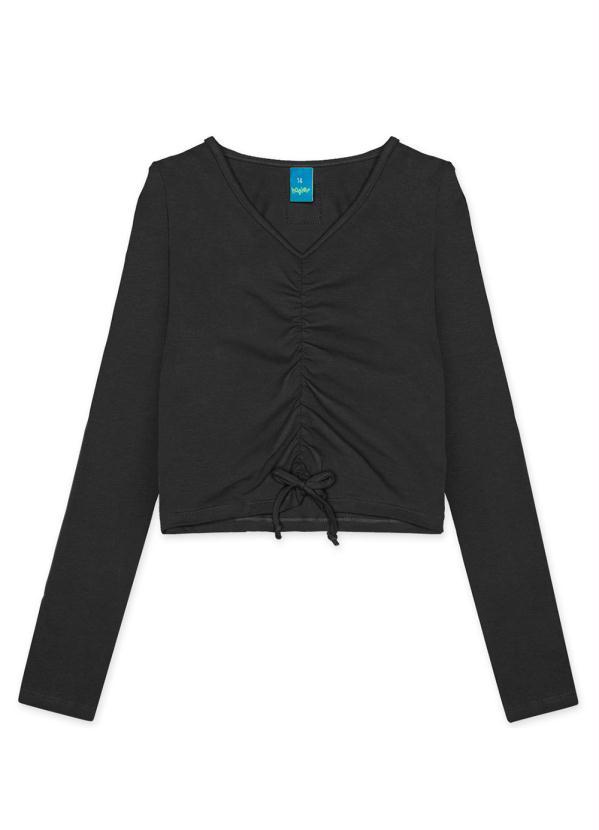 Hapier - Blusa Cropped Manga Longa Juvenil Menina Preto