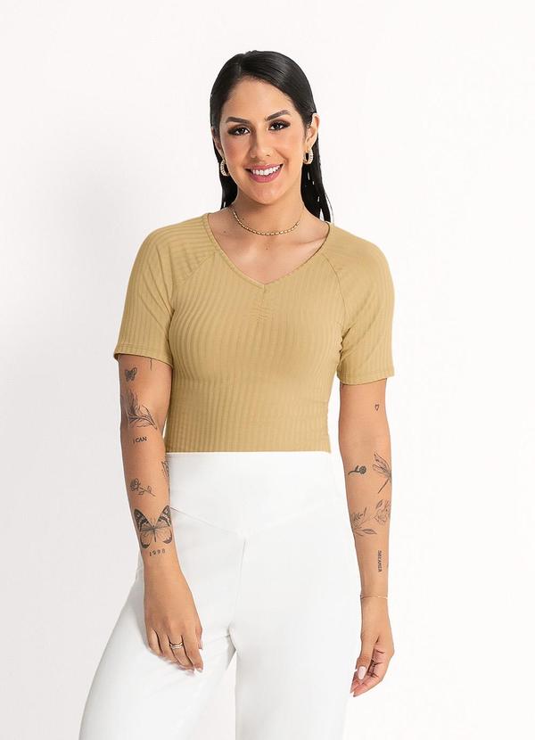 Habana - Blusa Decote V em Canelado Caramelo