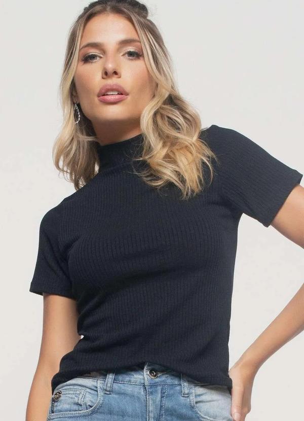 Salvatore Fashion - Blusa Gola Alta Malha Canelada Fashion Preto