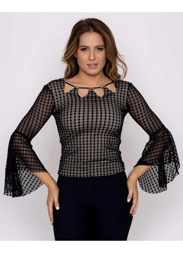 Karmani - Blusa Karmani de Renda Manga Flare Preto Preto