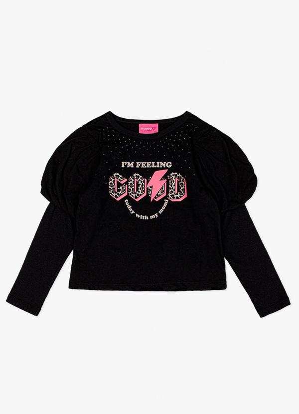 Momi - Blusa Manga Longa I'Am Felling Preto