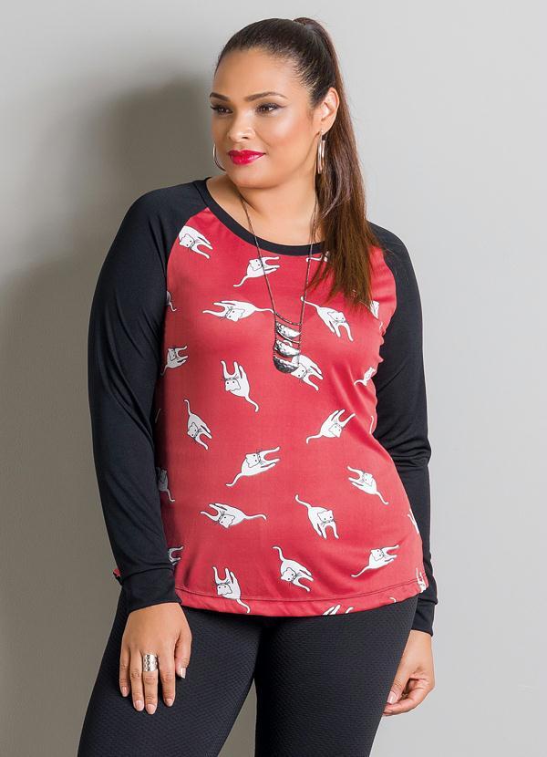 Marguerite - Blusa Manga Longa Preta e Vermelha Plus Size