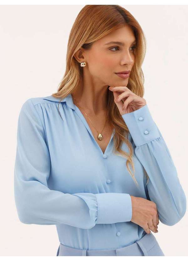 Principessa - Blusa Manga Longa Regular em Crepe Azul Claro Eliziane