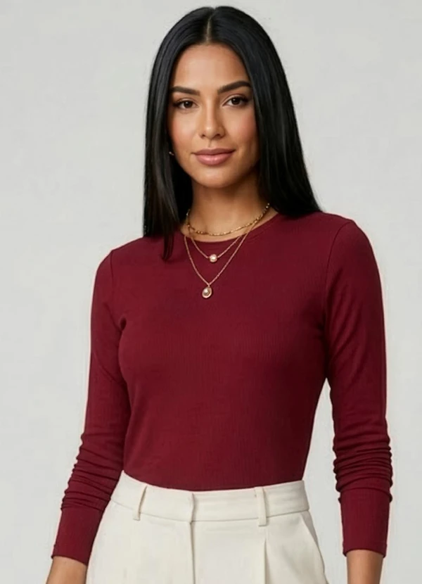 Rovitex - Blusa Manga Longa Visco Tricot Vermelho
