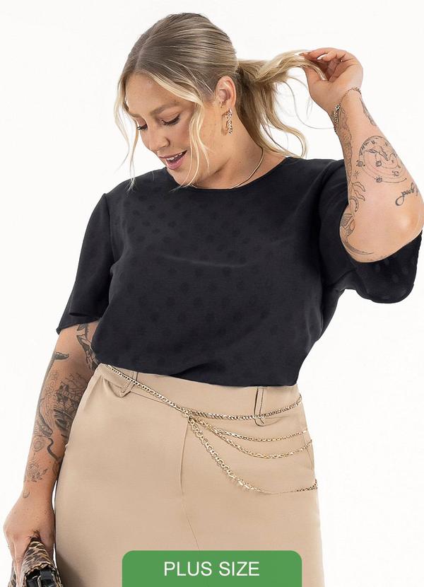 Habana - Blusa Plus Size em Tecido PlanoPreto