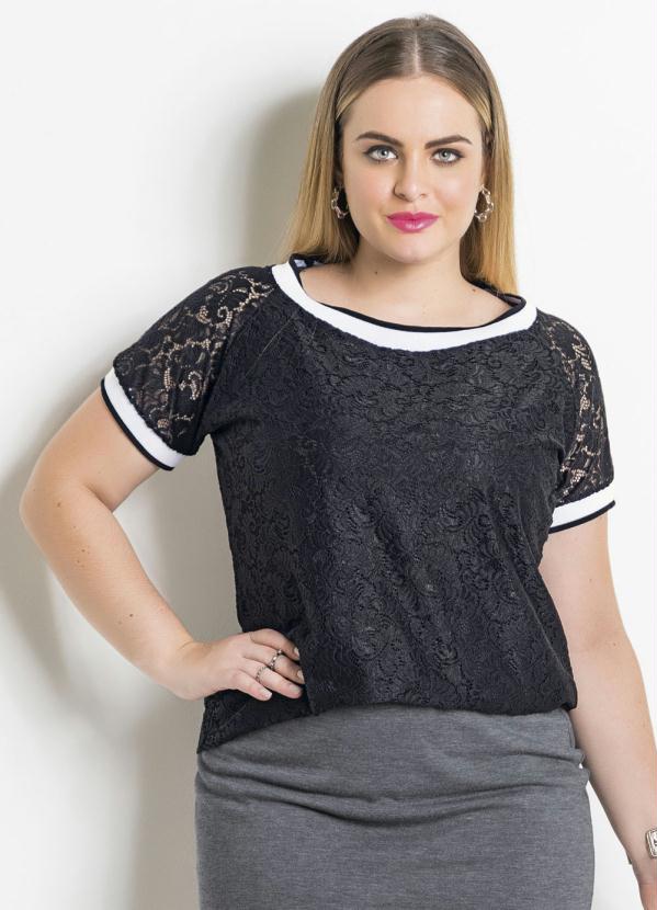 Quintess - Blusa Preta com Renda Plus Size Quintess