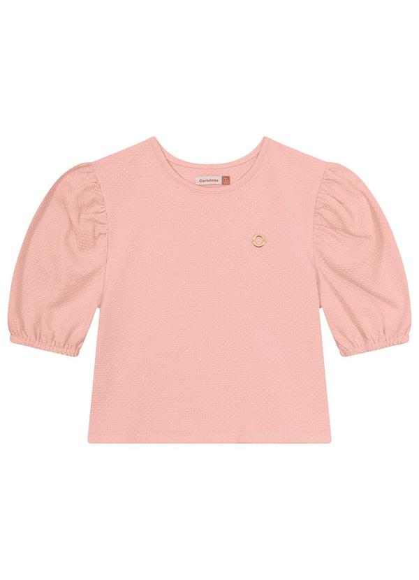 Carinhoso - Blusa Rosê Cropped em Malha Trabalhada Menina