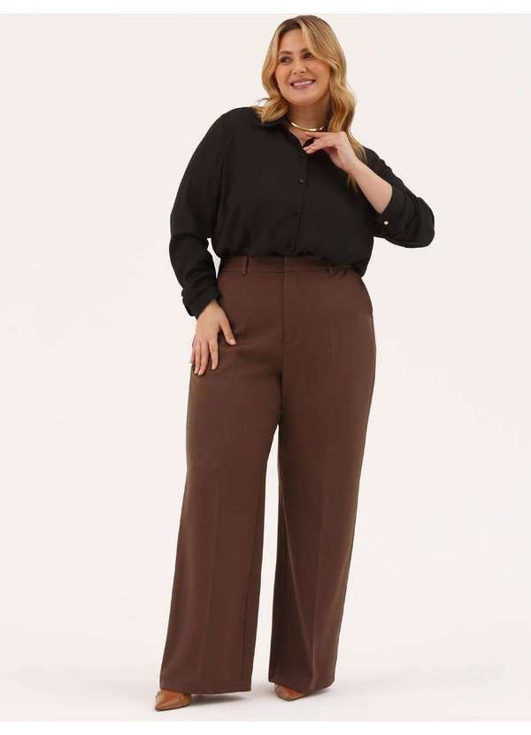 Principessa - Calça Alfaiataria Wide Leg Marrom Antonia