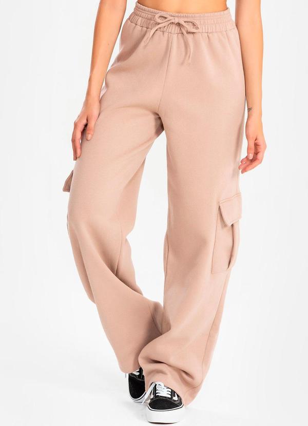 Meu Jeans - Calça Moletom Reta Cargo Terra
