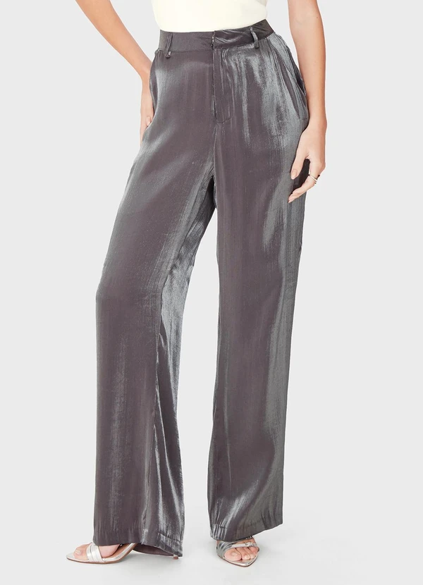 Enfim - Calça Reta em Acetinado Glow Cinza Grafite