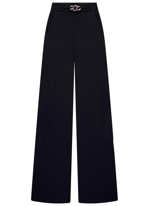 Lunender - Calça Wide Leg em Viscose com Detalhe Cós Preto