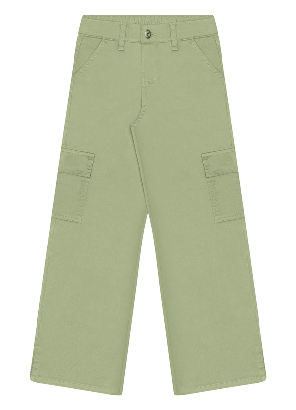 Alakazoo - Calça Wide Leg Menina com Bolso Cargo Verde