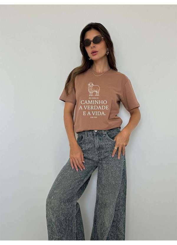 Cianitas - Camiseta Feminina Marrom Claro Eu Sou o Caminho - Marrom Claro