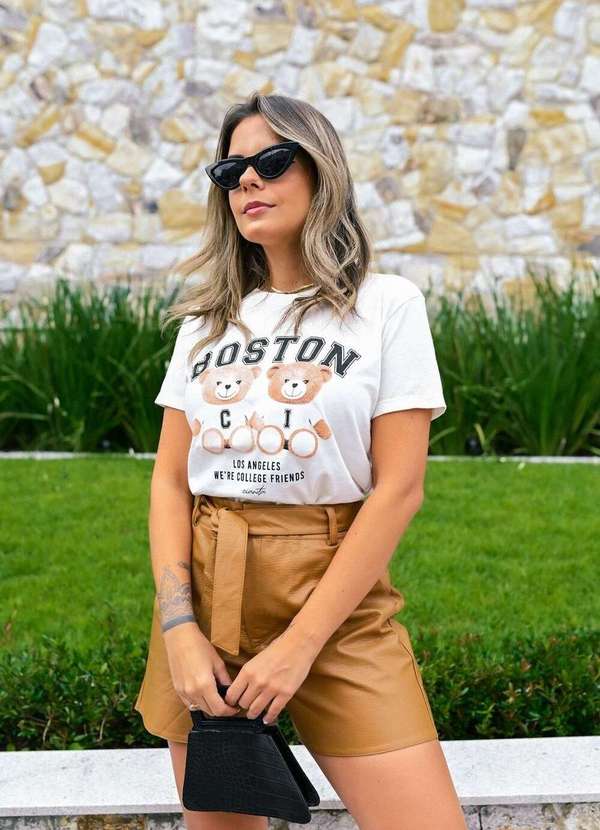 Cianitas - Camiseta Feminina Off Boston Urso - Off