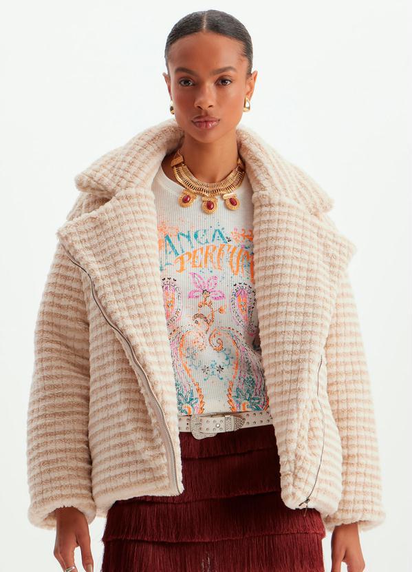 2. Lança Perfume - Casaco Oversized de Pêlo Sintético Xadrez Bege