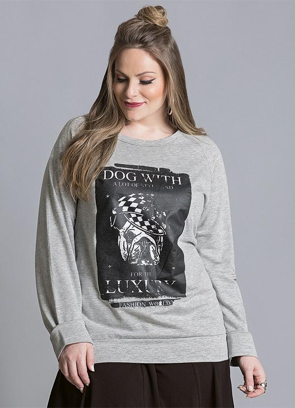 Quintess - Casaco Raglan Mescla com Estampa Plus Size