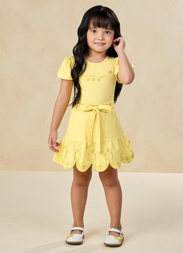 Milli e Nina - Conjunto Blusa e Saia em Cotton Penteado Amarelo