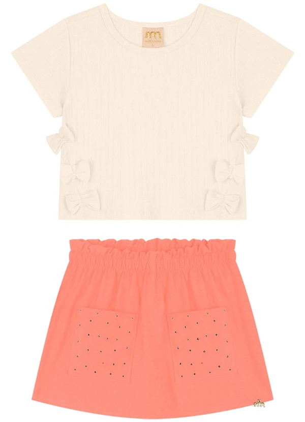 Milli e Nina - Conjunto Blusa e Shorts Saia Twill Stretch Bege