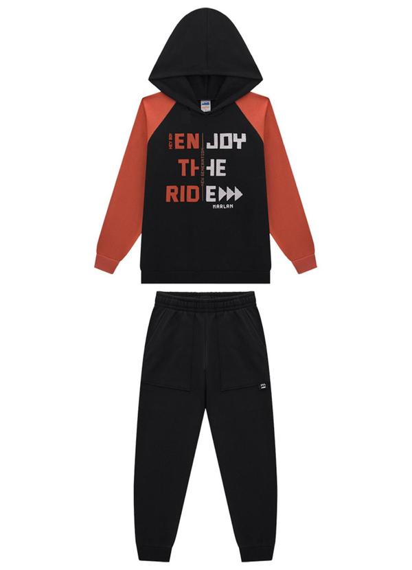 Marlan - Conjunto Blusão Enjoy e Calça em Moletom Preto