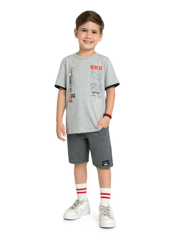Marlan - Conjunto Camiseta e Bermuda em Moletinho Cinza