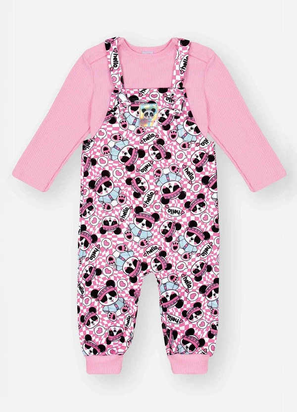 Abrange - Conjunto com Jardineira Bebê Menina Panda Rosa