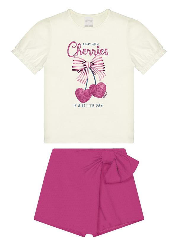 Alakazoo - Conjunto com Shorts Saia e Blusa Estampada Rosa